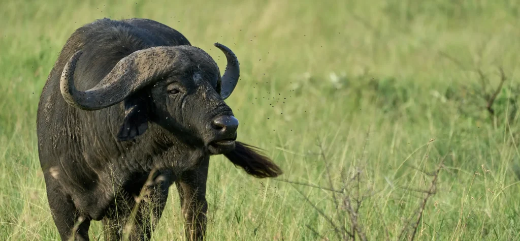 African buffalo are formidable herd animals known for their strength and unpredictable behaviour. Best seen in: Ngorongoro Crater, Serengeti plains, and Lake Manyara.